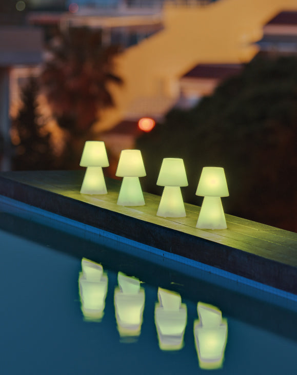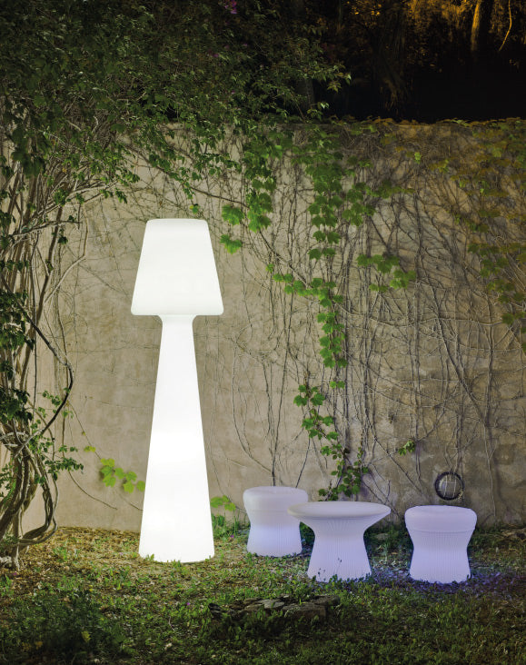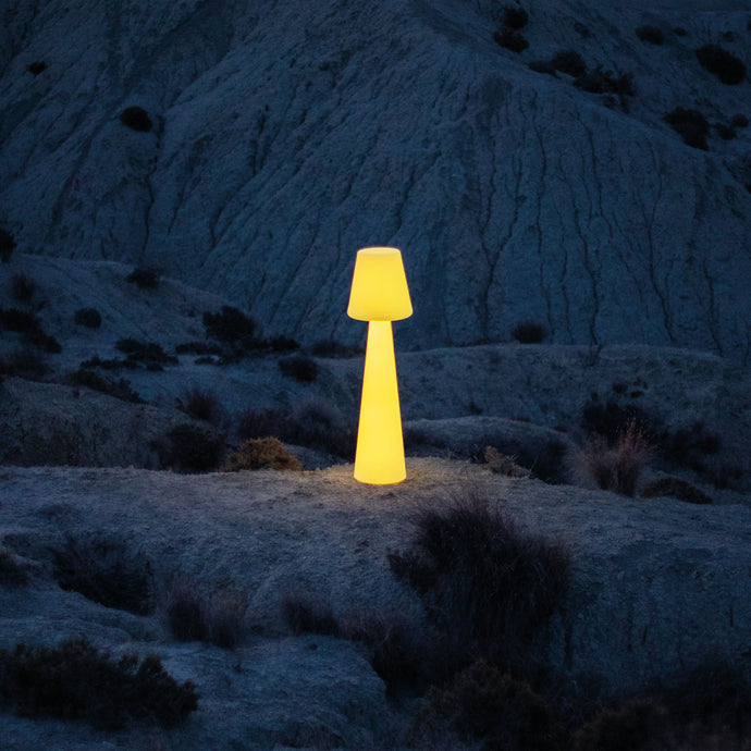 Está fabricado en polietileno para utilizarla en el exterior, puedes elegir entre el acabado con cable y la opción sin cables de batería recargable y permite escoger entre luz cálida o fría.