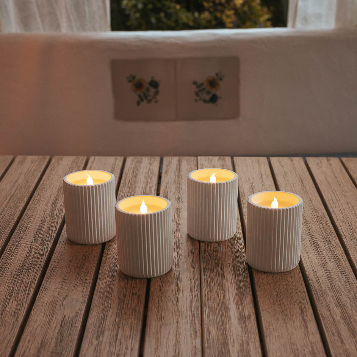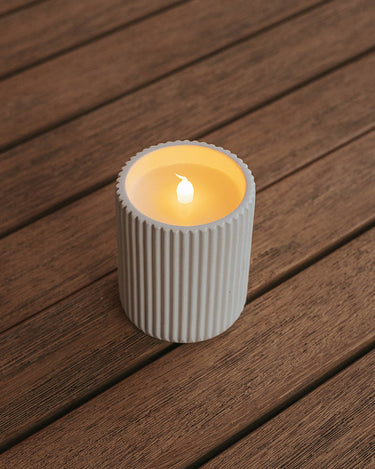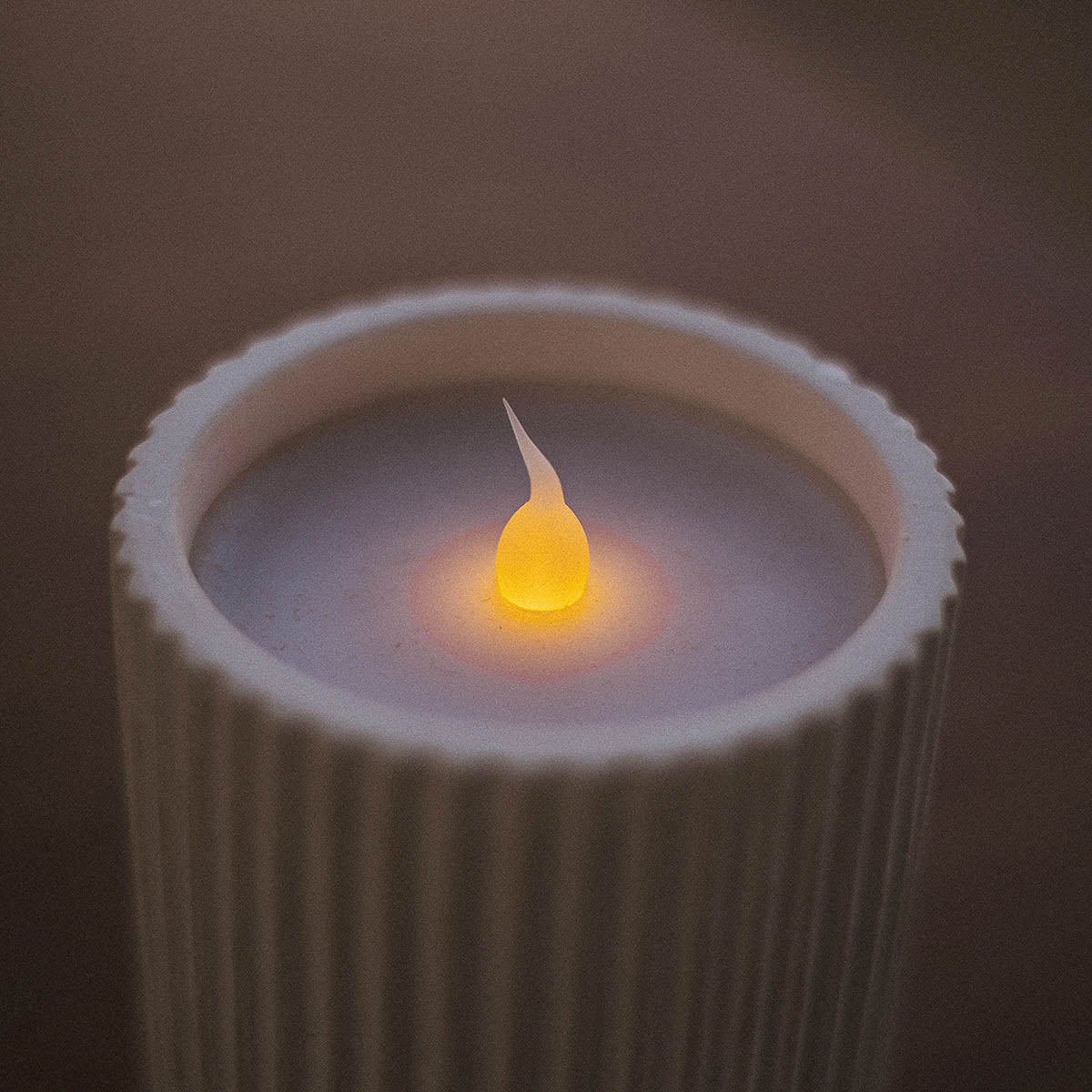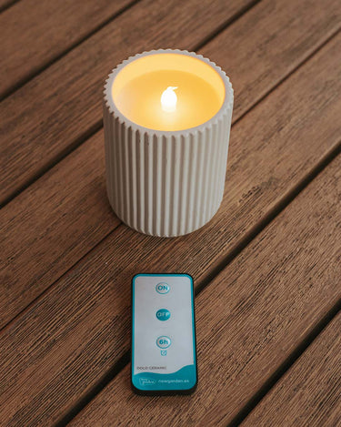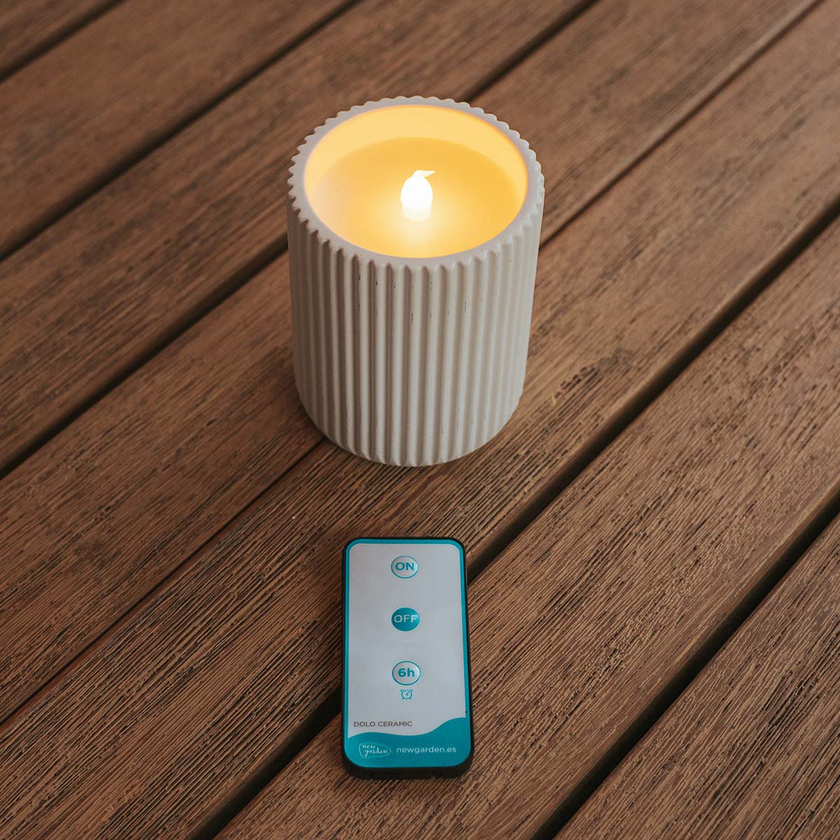 La lámpara de mesa con forma de vela Dolo Ceramic está creada para lugares y espacios donde queramos aporta un toque de diseño y sofisticación. Dolo Ceramic está fabricada con cera natural y recubrimiento de cerámico blanco y su luz efecto vela, el cual, imita a la perfección el movimiento de una llama natural. Incluye mando a distancia para encender y apagar y dispone de temporizador para ajustar su apagado automático.