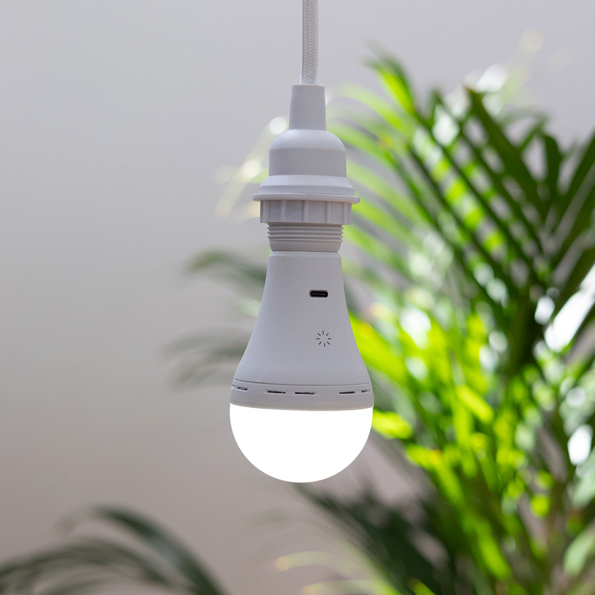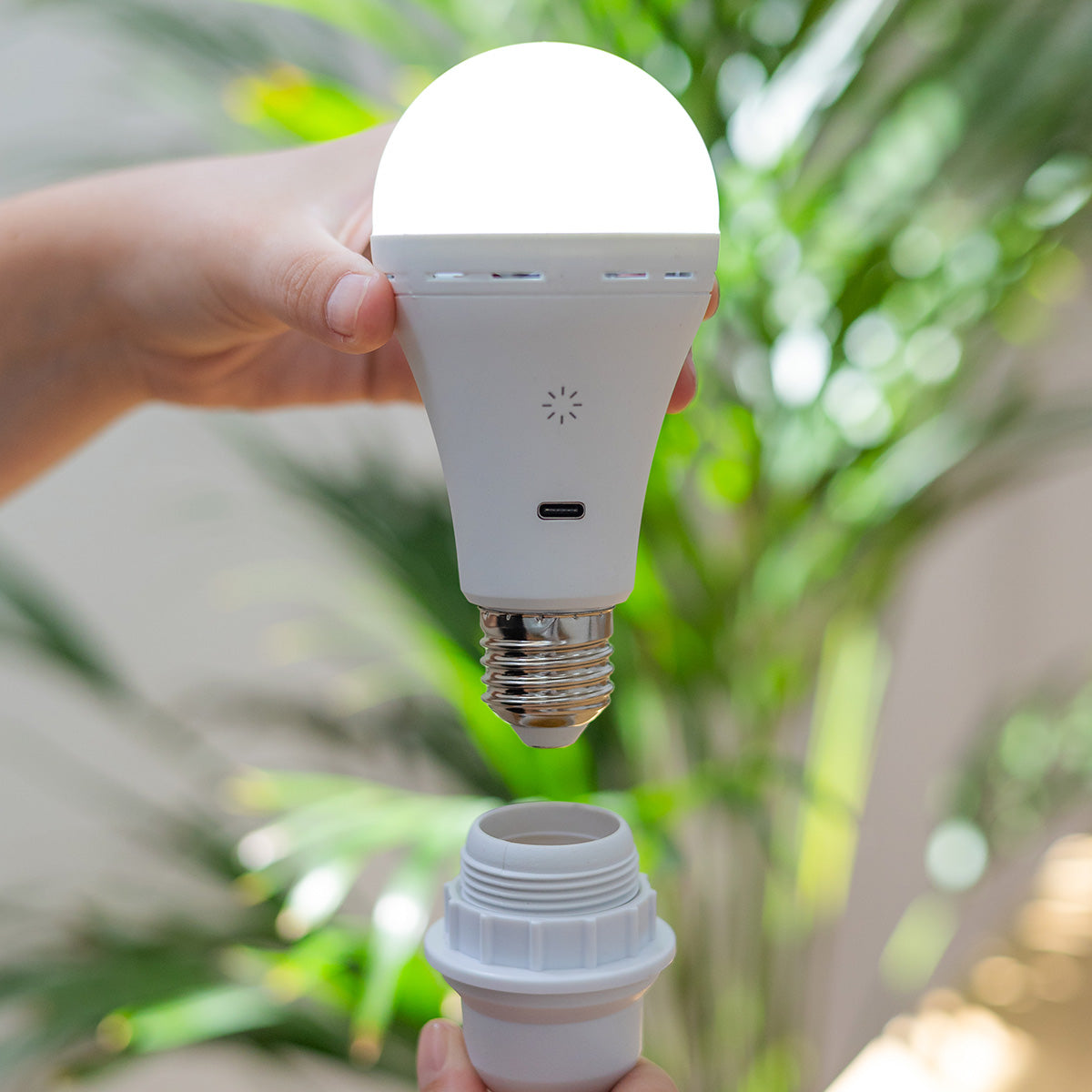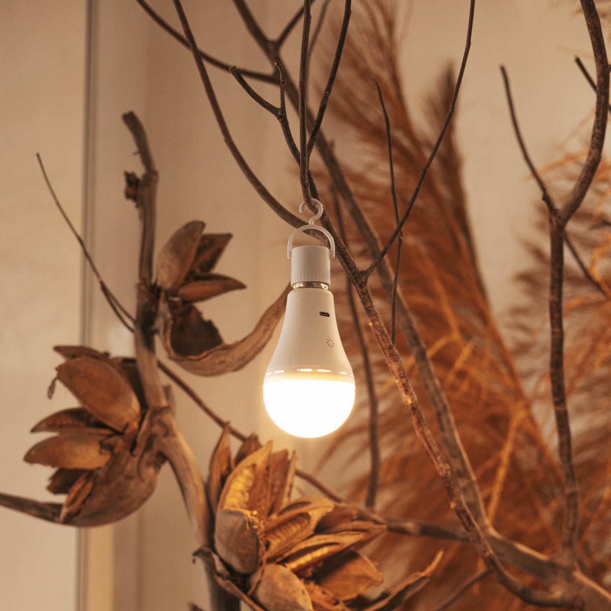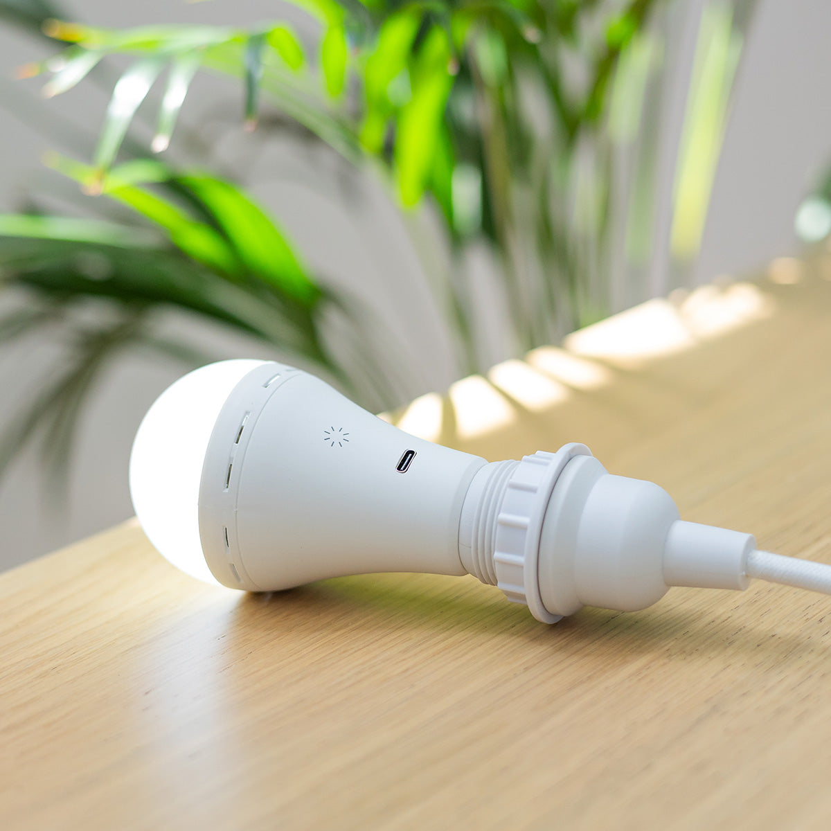 La bombilla portátil recargable Lapera no requiere instalación, tan solo tendrás que roscarla en un portalámparas de casquillo E27 y encenderla.