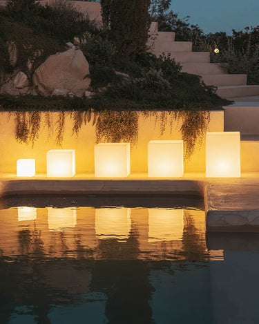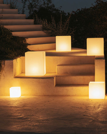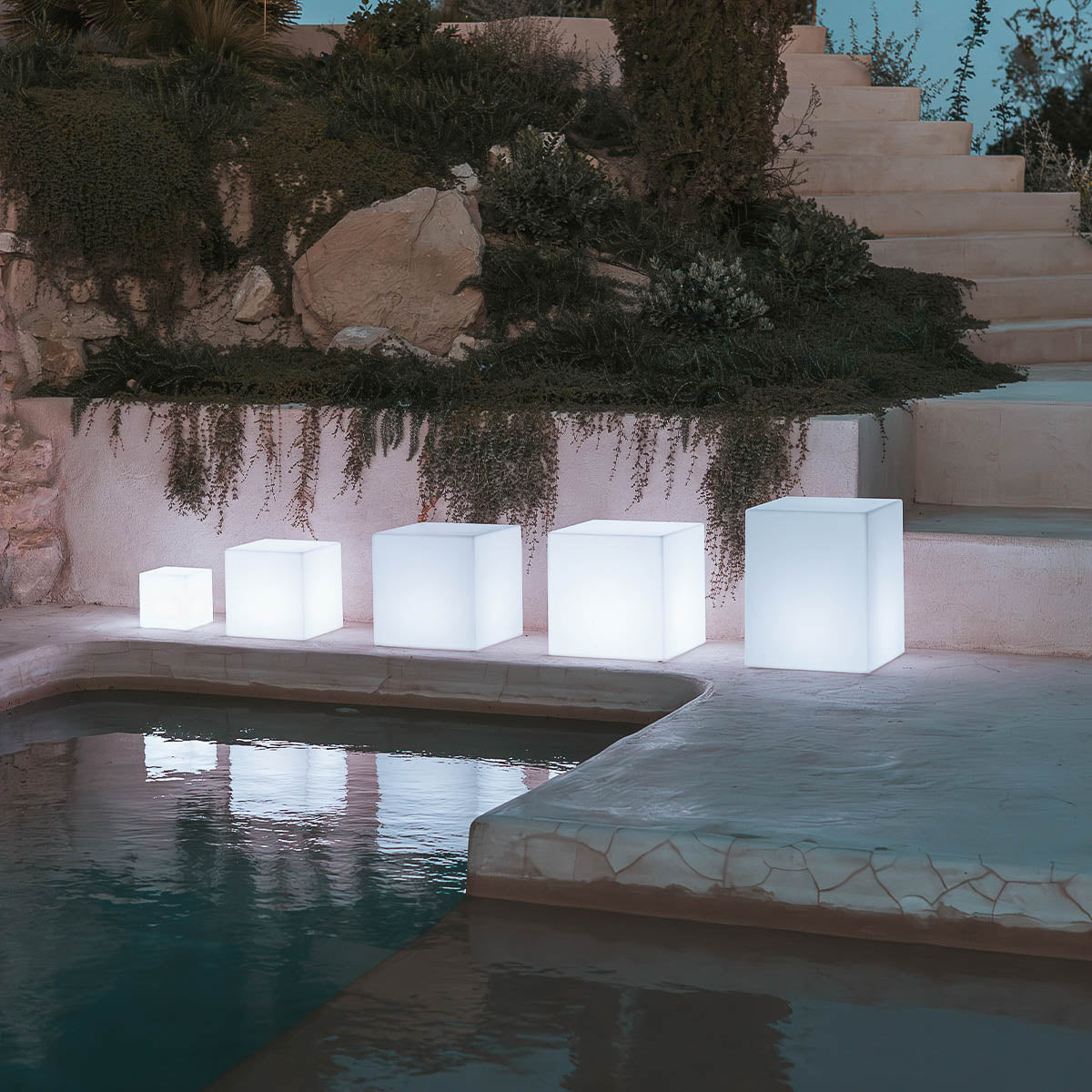 El cubo iluminado CUBY está disponible en diferentes tamaños, para que encaje en cualquier rincón de tu hogar y puedes encontrarla tanto con cable en luz blanca como inalámbrica, por si no te apetece levantarte del sofá para cambiar el color o la intensidad de la luz.