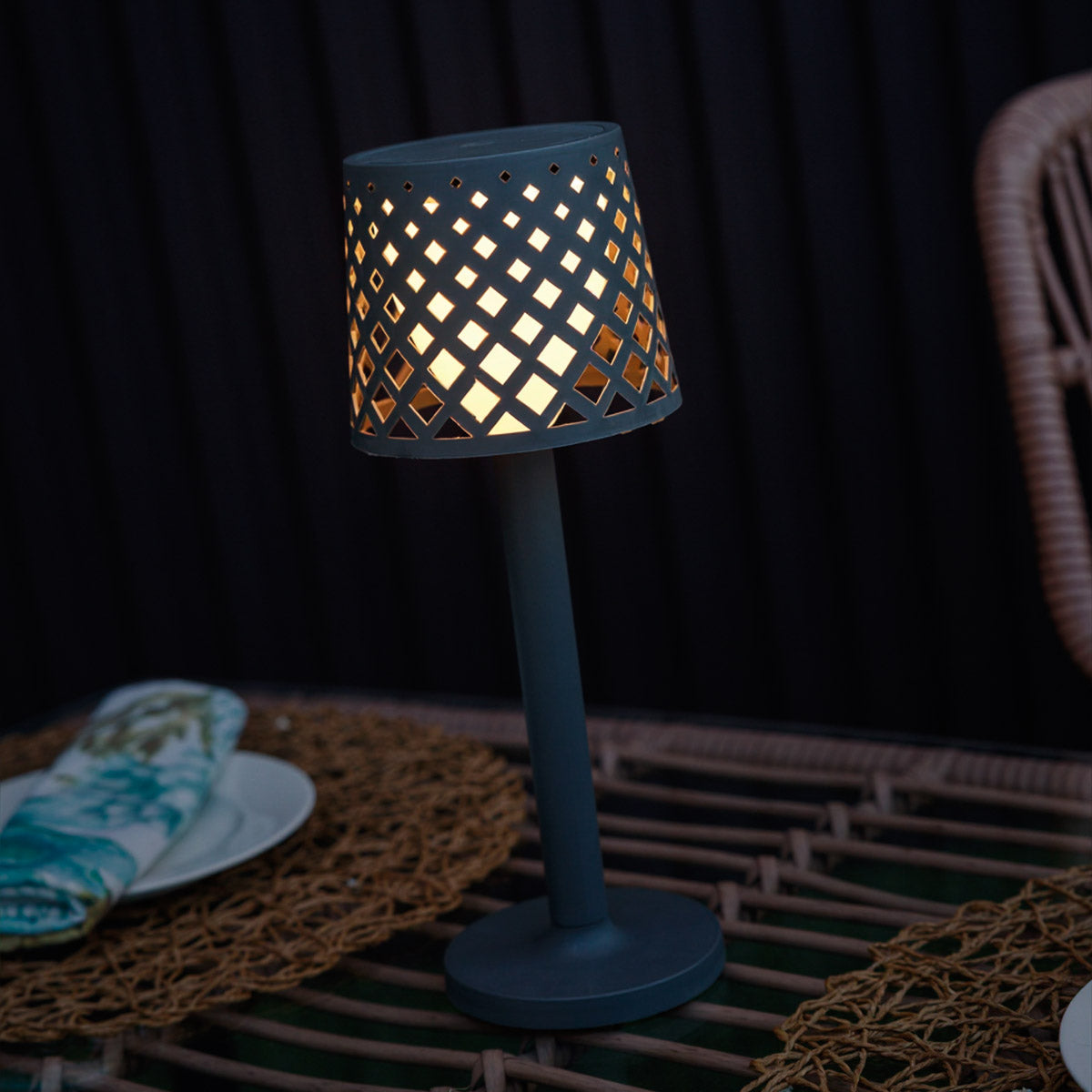 Gretita table Lamp es la lámpara perfecta de sobremesa, puedes situarla en cualquier espacio de tu hogar o tu jardín y seguro que no dejará a nadie indiferente. Es ideal para dar un punto de luz a tu mesa sin necesidad de cables. Está fabricada en plástico reciclado y para su funcionamiento tan solo necesitas 3 pilas AAA. Para encenderla y regular su intensidad deberás pulsar el botón táctil en la superficie de la tulipa. Combina esta lámpara con los demás productos de la familia Gretita para crear espacios llenos de luz y tendencia.