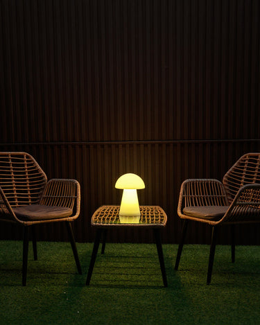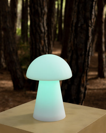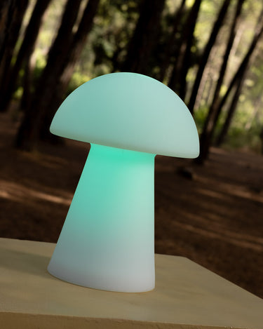 La lámpara de mesa MAFALDA está lista para darle un toque diferente a tu hogar. Diseñada con una forma parecida a una seta podrás contemplarla mientras imaginas como sería estar en algún bosque perdido recogiendo setas y trufas, y casi podrás sentir el olor del aire puro recorrer tus pulmones.