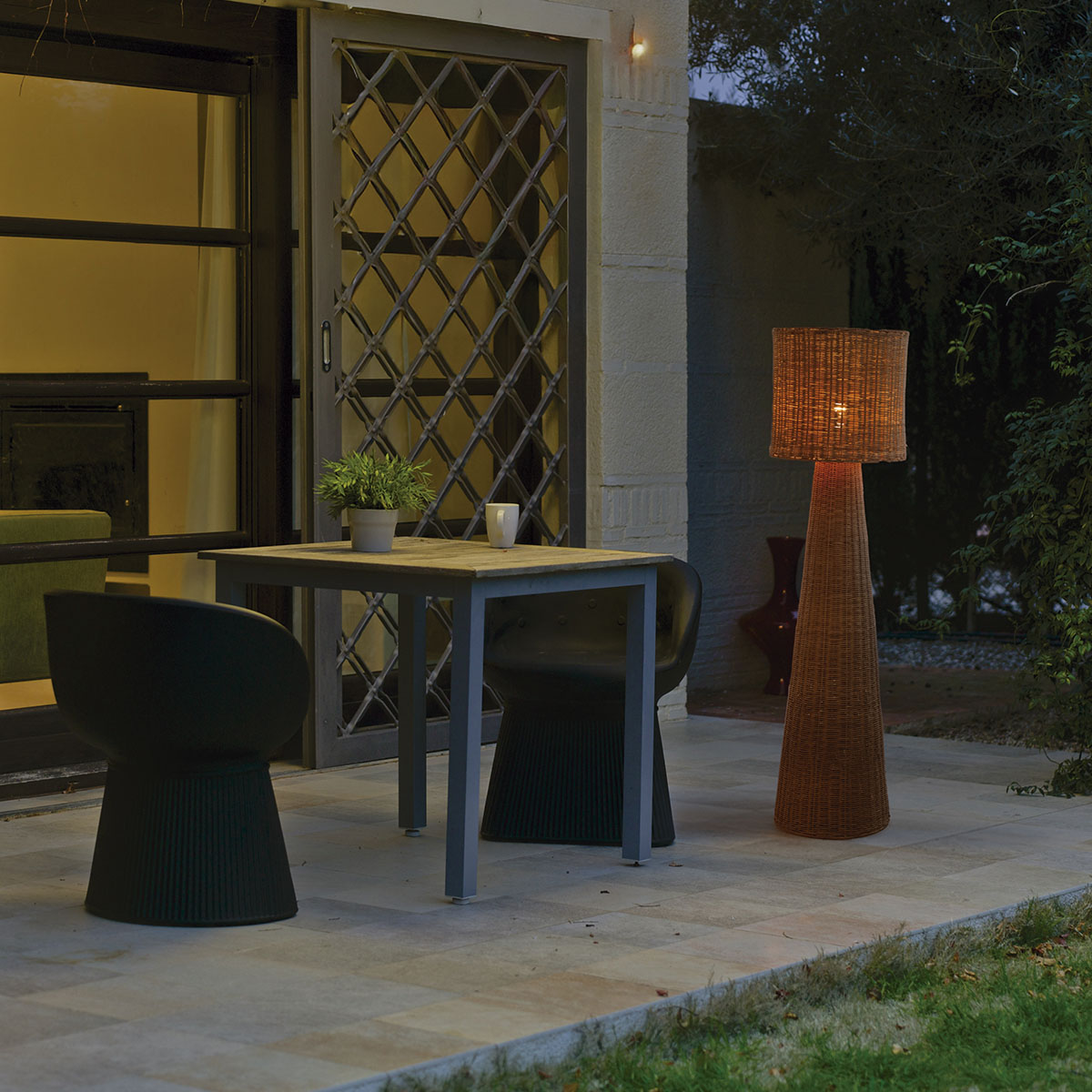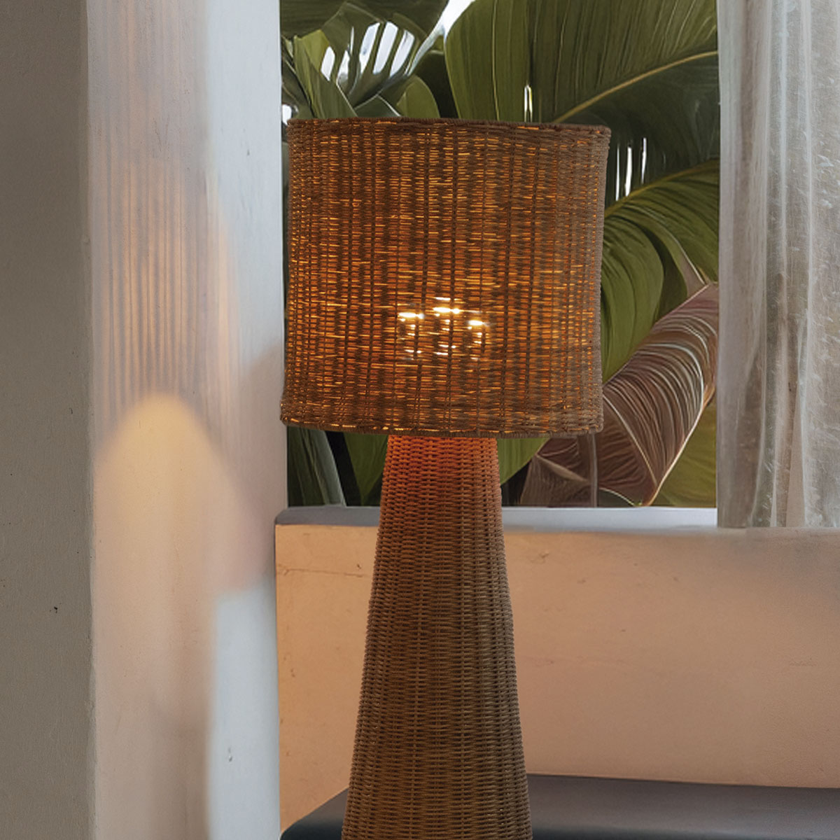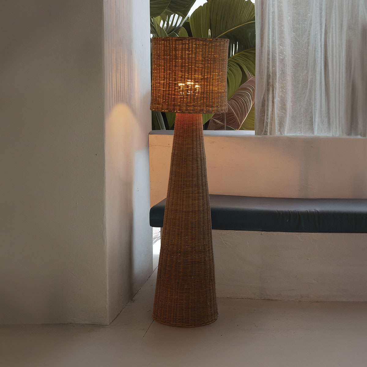 La lámpara de pie decorativa Grace 140 Nature está trenzada a mano con fibras naturales, aportando calidez y carácter a cualquier ambiente. Es el complemento ideal para iluminar espacios interiores o exteriores, creando una atmósfera acogedora con un marcado estilo natural.