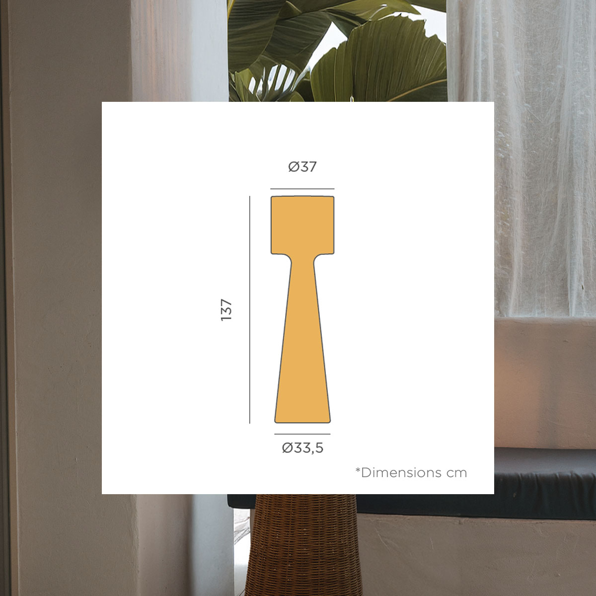 - Con cable: Este acabado incorpora un portalámparas para bombilla E27. El cable cuenta con un recubrimiento de fibra con efecto yute, que refuerza su estética orgánica y natural. (Bombilla E27 no incluida).