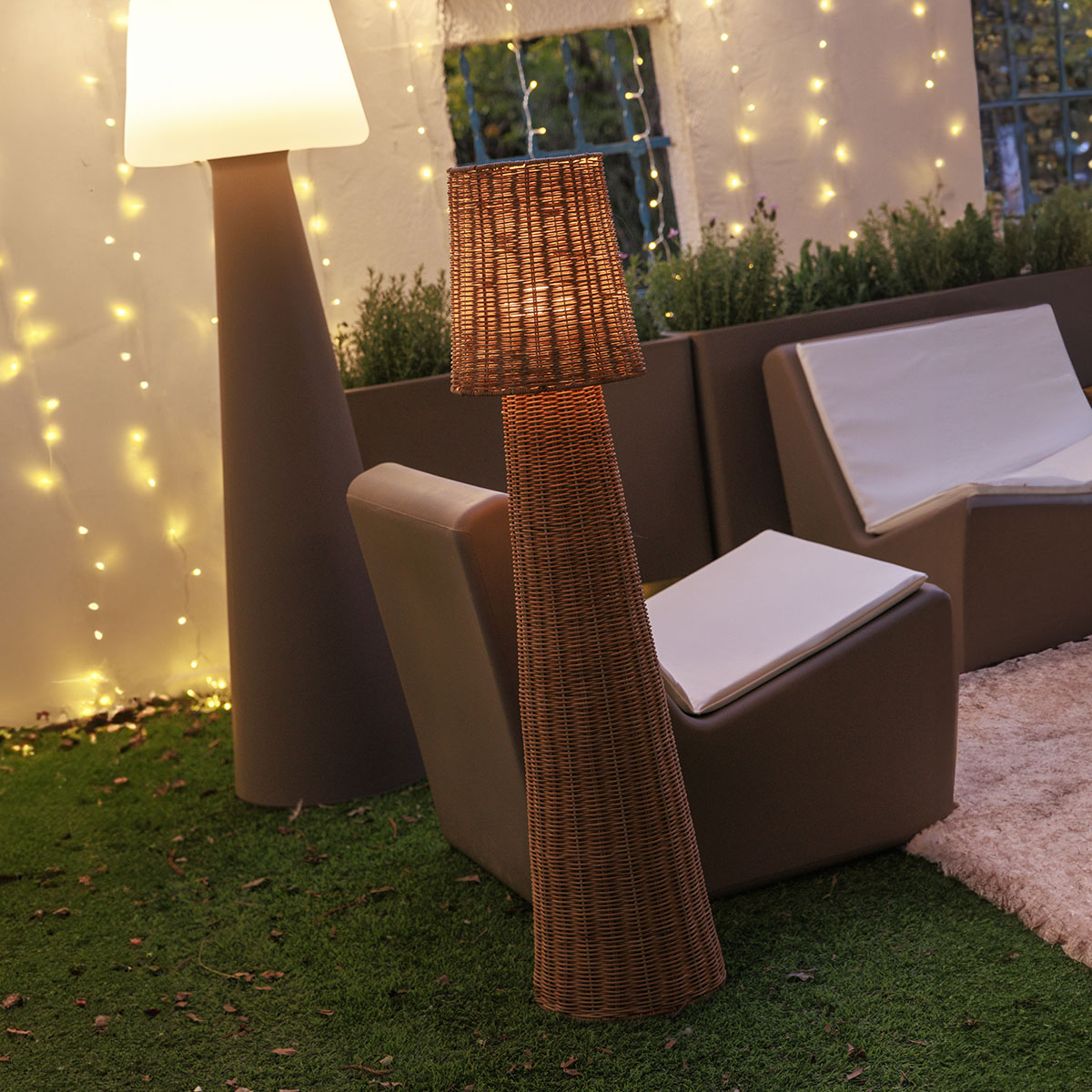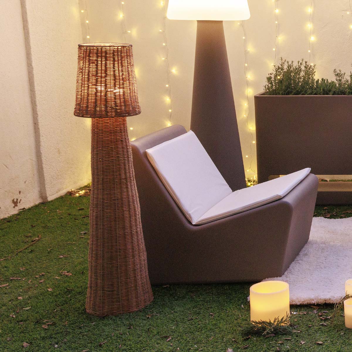 La lámpara de pie decorativa Lola 110 Nature está trenzada a mano con fibras naturales, aportando calidez y carácter a cualquier ambiente. Es el complemento ideal para iluminar espacios interiores o exteriores, creando una atmósfera acogedora con un marcado estilo natural.