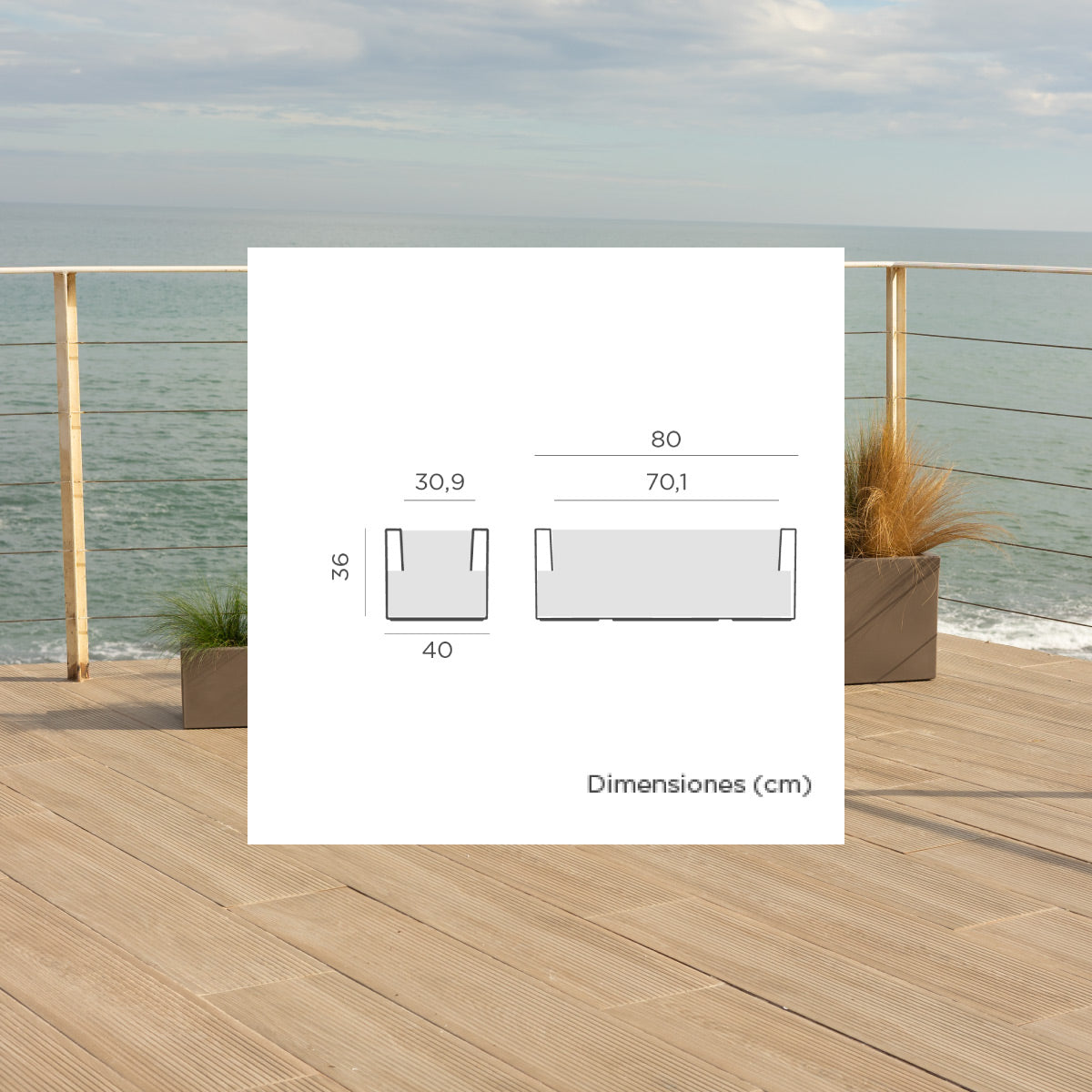 La jardinera Jara 80 (80x39x36 cm) es un Macetero rectangular de baja altura.