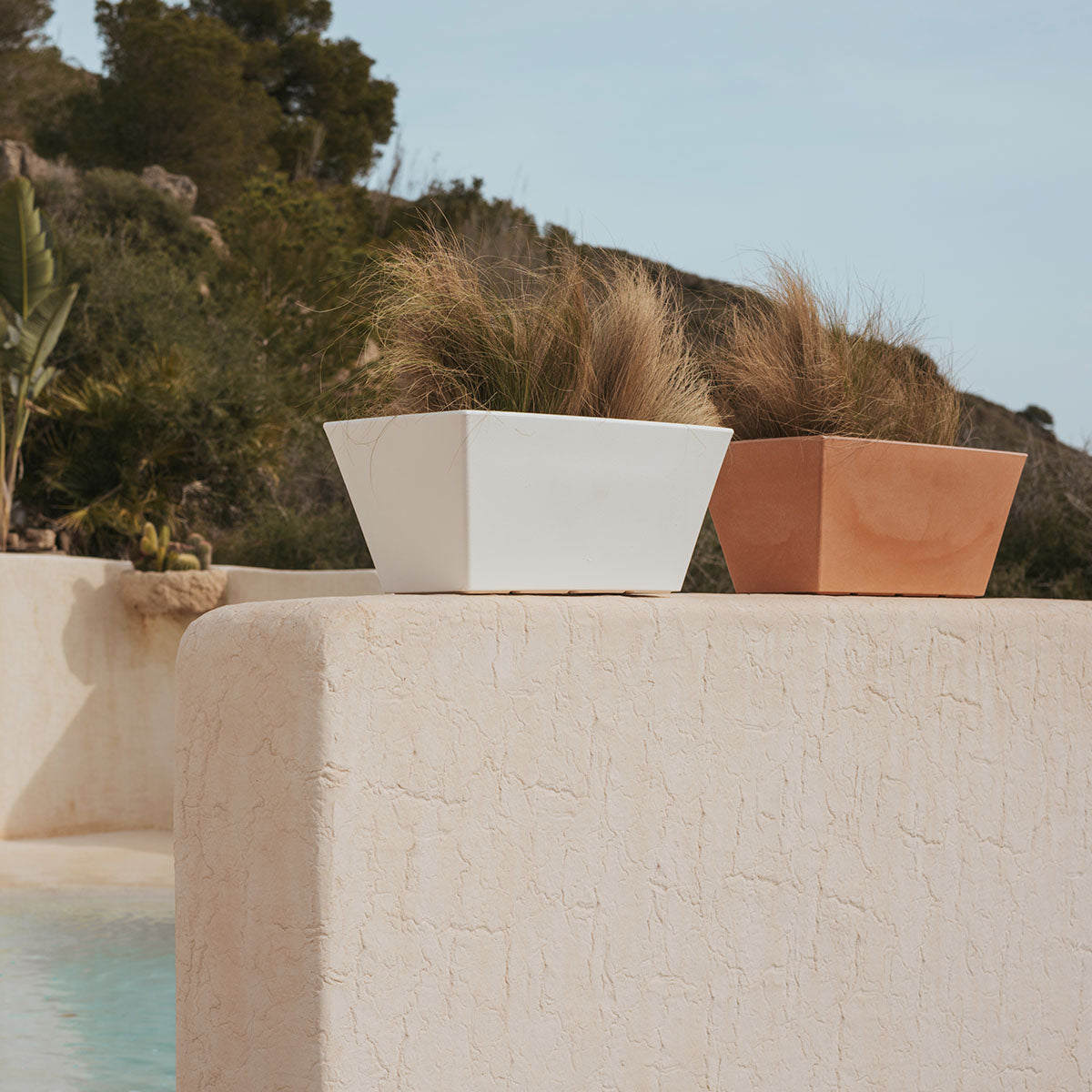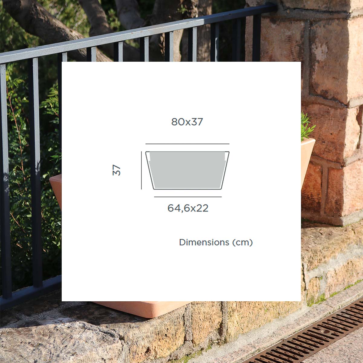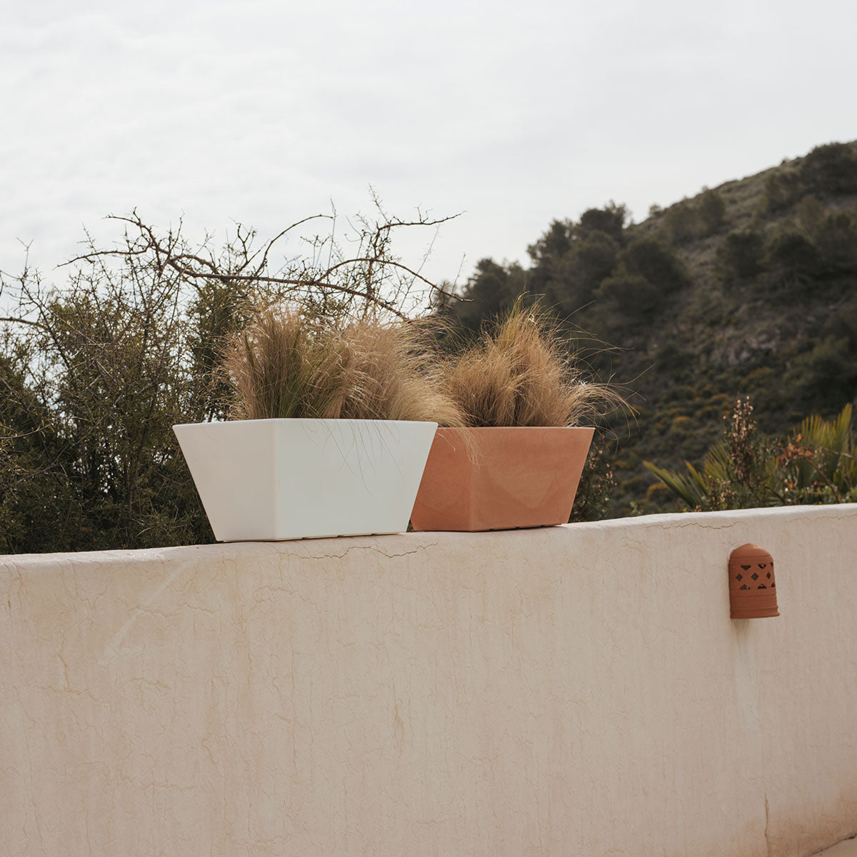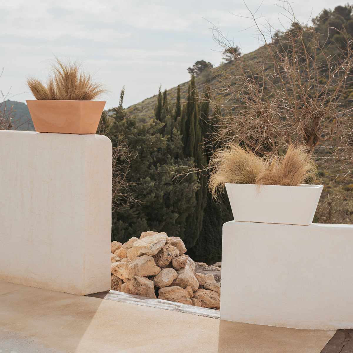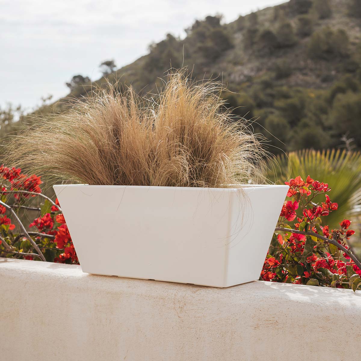 Jazmin 80 (80x37x37 cm): Es un macetero rectangular y trapezoidal. Disponible en varios tamaños, y colores. Ideal para cualquier espacio de exterior, terrazas o patios.