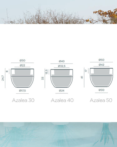 Macetero redondo de color Azalea 50: Es un macetero coniforme con una buena base de plantación. Líneas redondeadas y texturizado en acabado liso. Disponible en varios tamaños y colores.