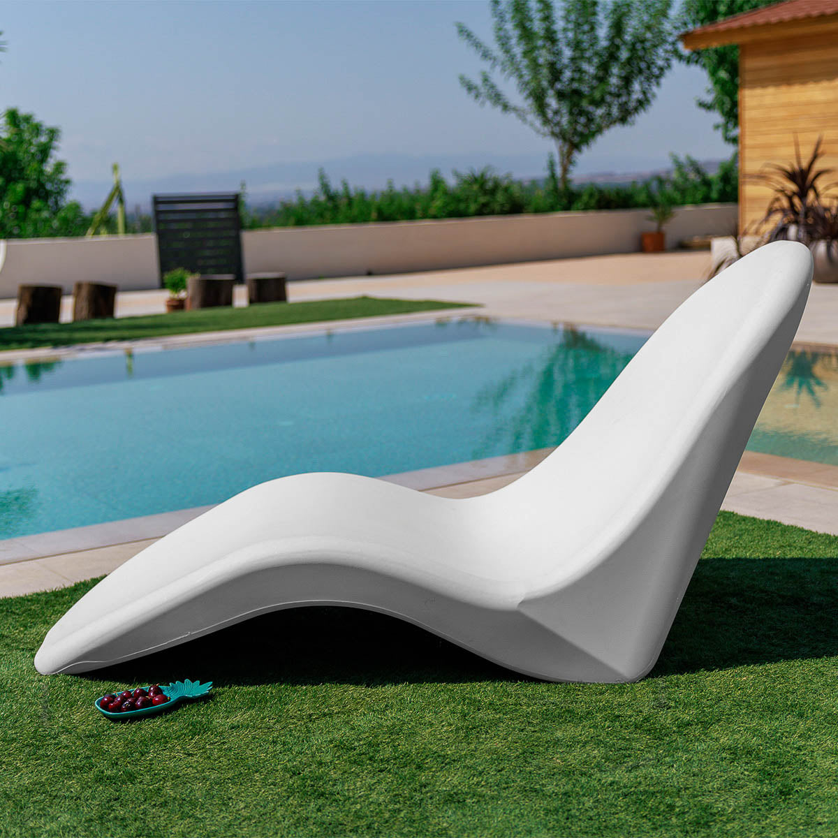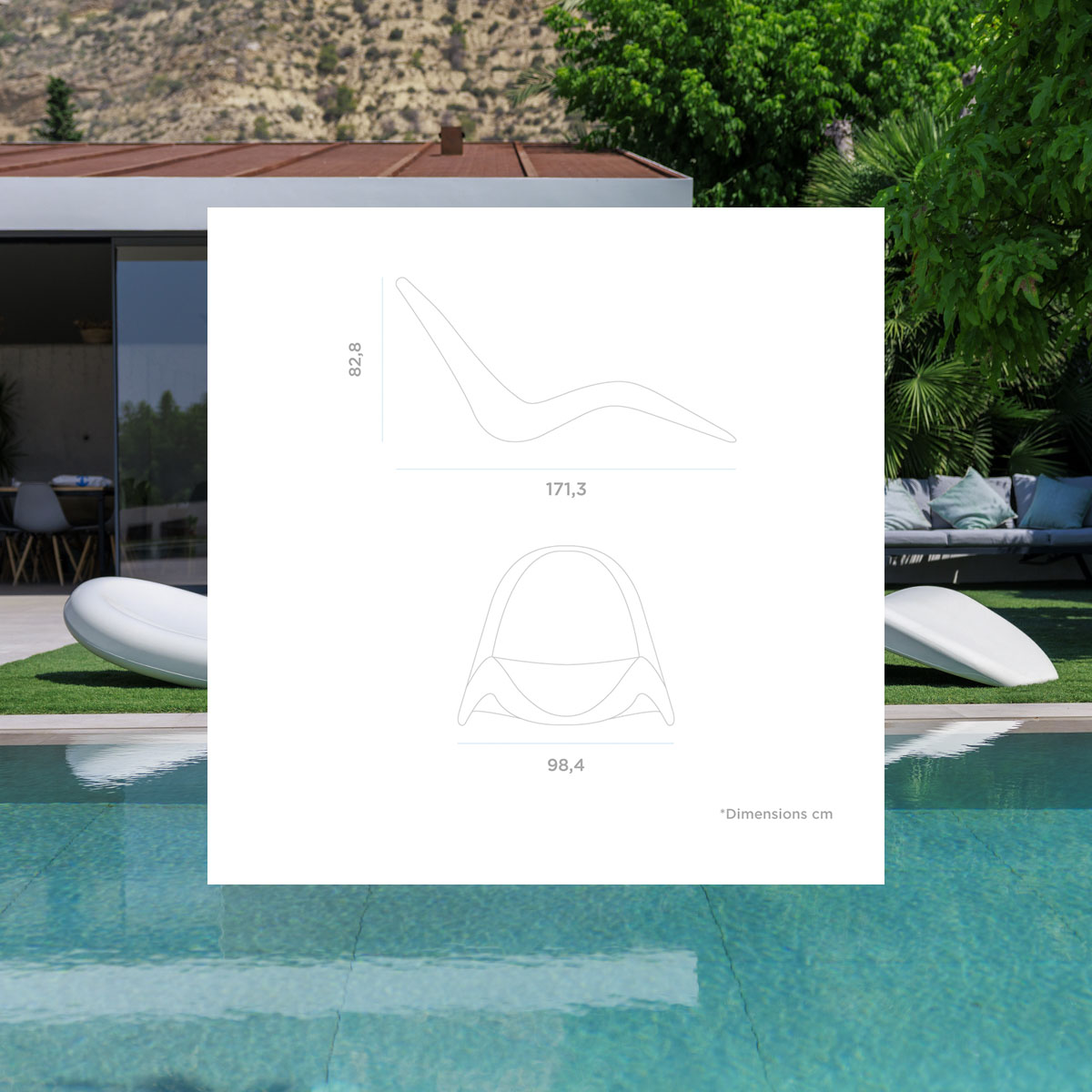 Está totalmente fabricada en polietileno por lo que es una tumbona muy ligera y super resistente a temperaturas extremas. También está protegida contra los rayos UV haciendo que la vida útil del producto sea extraordinariamente larga.