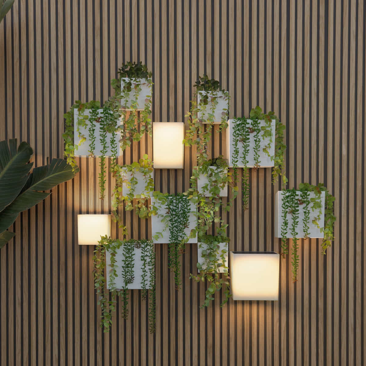 Transforma cualquier pared en una composición decorativa única con el pack WALLY, una solución que combina iluminación solar inteligente y jardinería vertical en un solo concepto.
